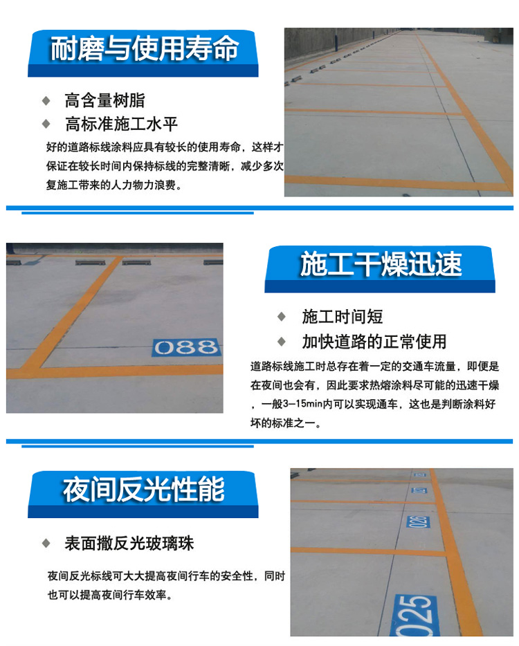 三、道路熱熔劃線特點(diǎn):